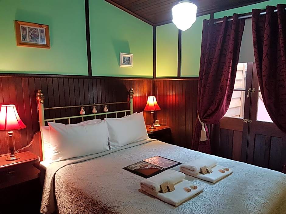 Upstairs room with access to a charming veranda. Beautifully appointed room with wood paneling and private bathroom with spa bath and separate shower. Includes a TV, DVD player, heating, air conditioning, electric blanket and tea/coffee making facilities.